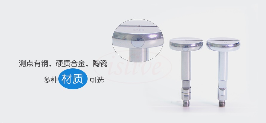 兩瓣式測頭一般分為標準孔測頭(碳鋼和硬質合金測點)、陶瓷測頭和盲孔測頭。您可以根據要測量孔的深度來確定測頭的形式,如果要測量位置非常靠近根部,可以選用盲孔測頭;根據孔的形式我們還可以非標制作超盲孔測頭;如果要測量的工件比較軟,如鋁、銅等材質工件,可以選擇陶瓷測頭。
