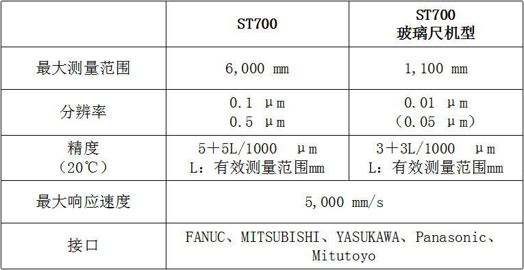 *1 請各個制造商詢問適用系統的詳細情況(可連接)。 *2 ENSIS 是三豐公司的注冊商標 ABS ST700系列技術參數: