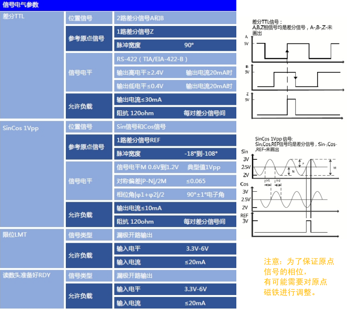 SinCos 1Vpp、差分TTL信號接口。內置 REF 原點與限位信號。