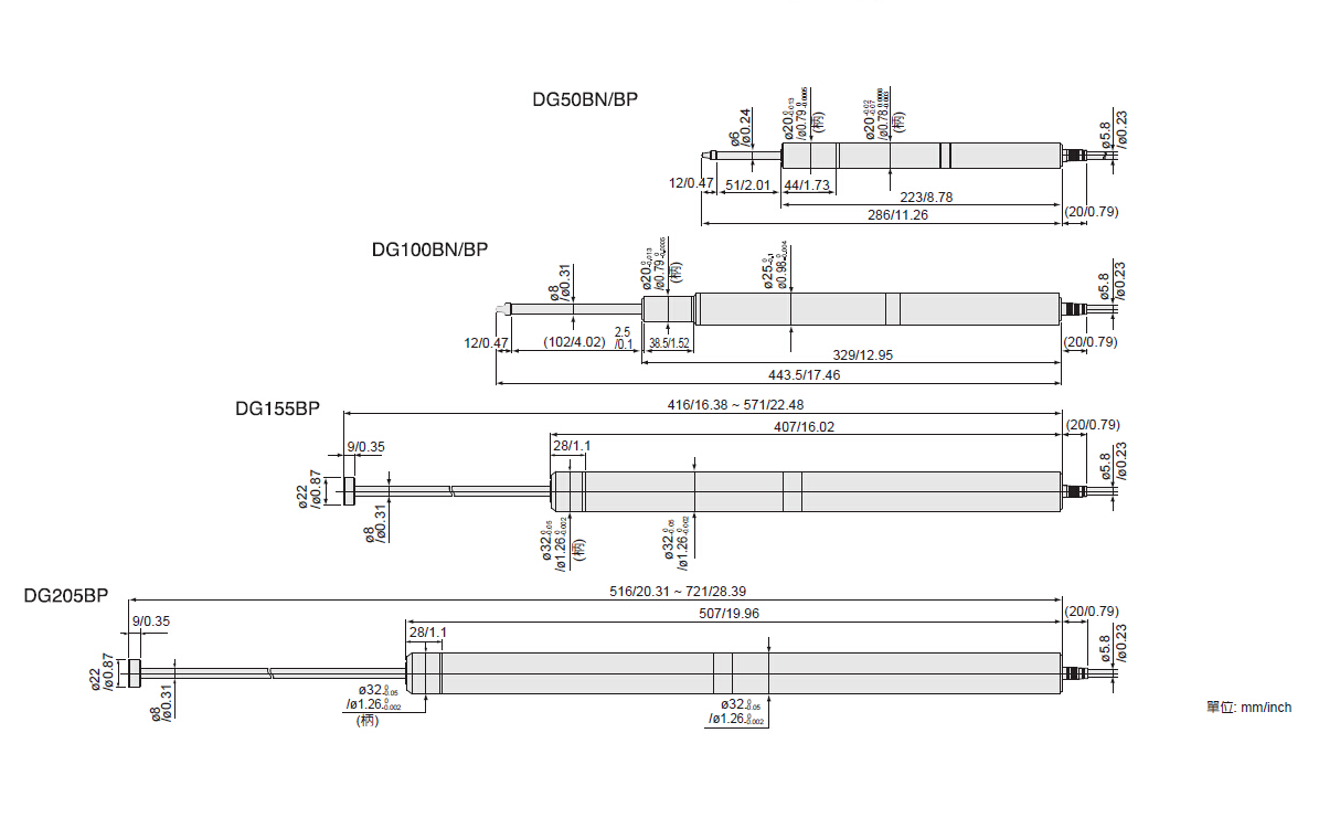 ·精度: 2 μm (DG50BP/50BN), 4 μm (DG100BP/100BN),5 μm (DG155BP), 6 μm (DG205BP)